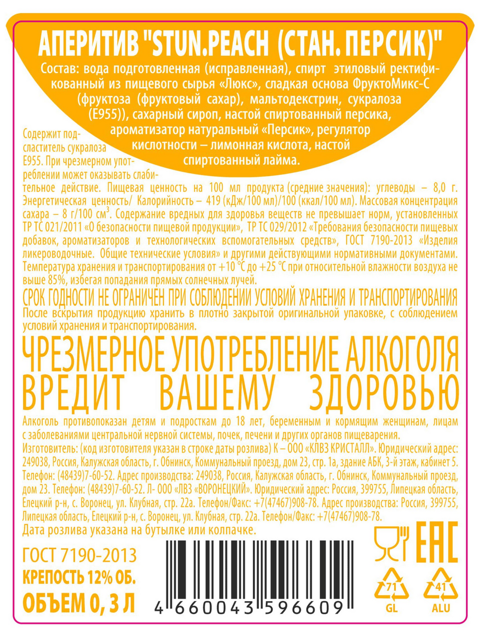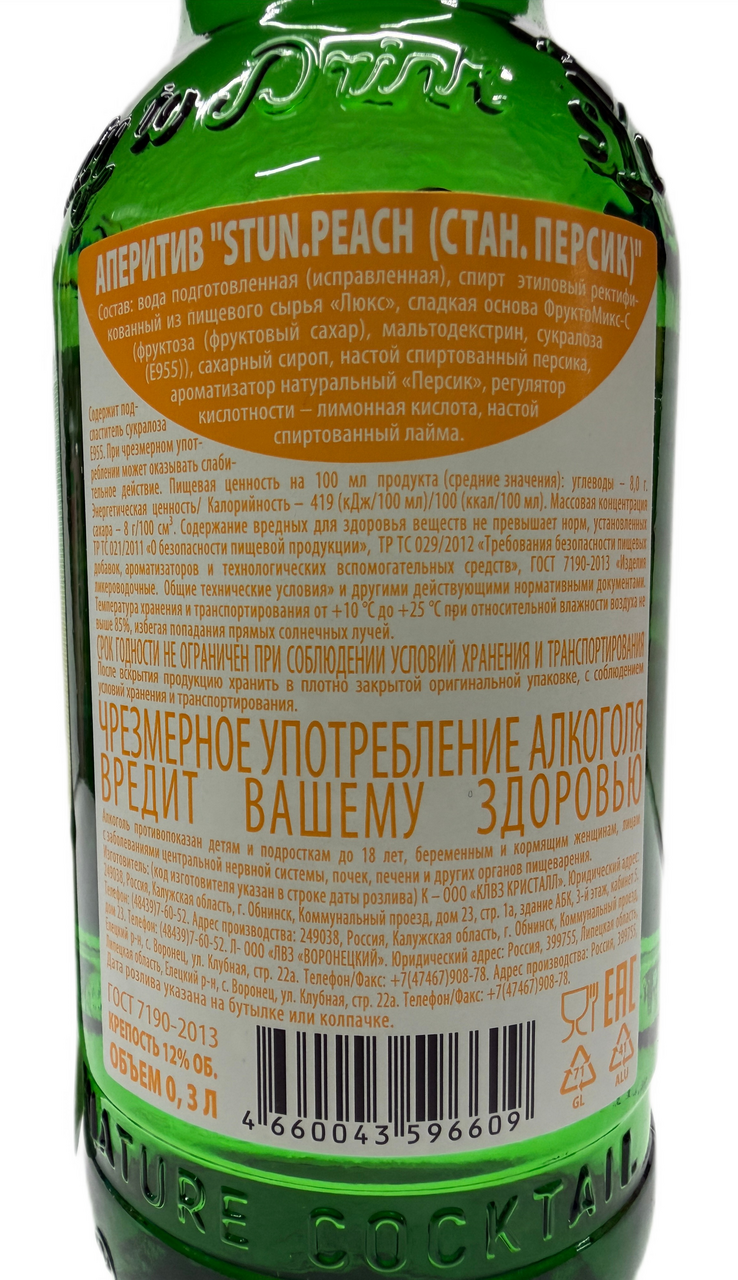 Яркий и сбалансированный напиток со вкусом спелого персика и гармоничным послевкусием. В аромате преобладают нежные персиковые нотки.