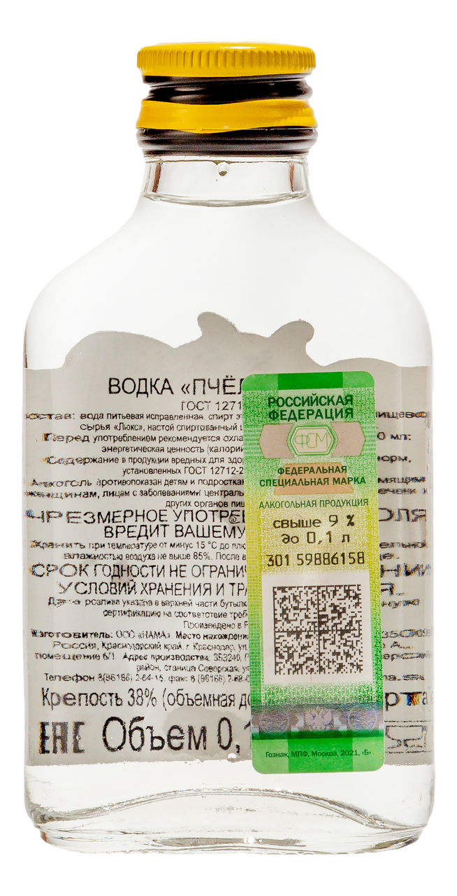 Водка Пчелка Люкс 0.1л - классическая водка, изготовленная исключительно из натуральных ингредиентов: воды из собственной артезианской скважины глубиной 600 метров, спирта класса Люкс, спиртованного настоя липового цвета и меда. Водка обладает мягким, сладковатым вкусом. Этикетка водки украшена изображением симпатичной пчелки, что полностью соответствует концепции бренда.