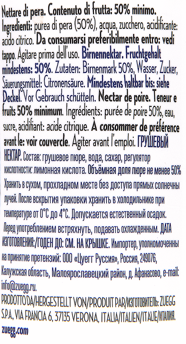 Нектар Zuegg Груша Вильямс, 200мл
