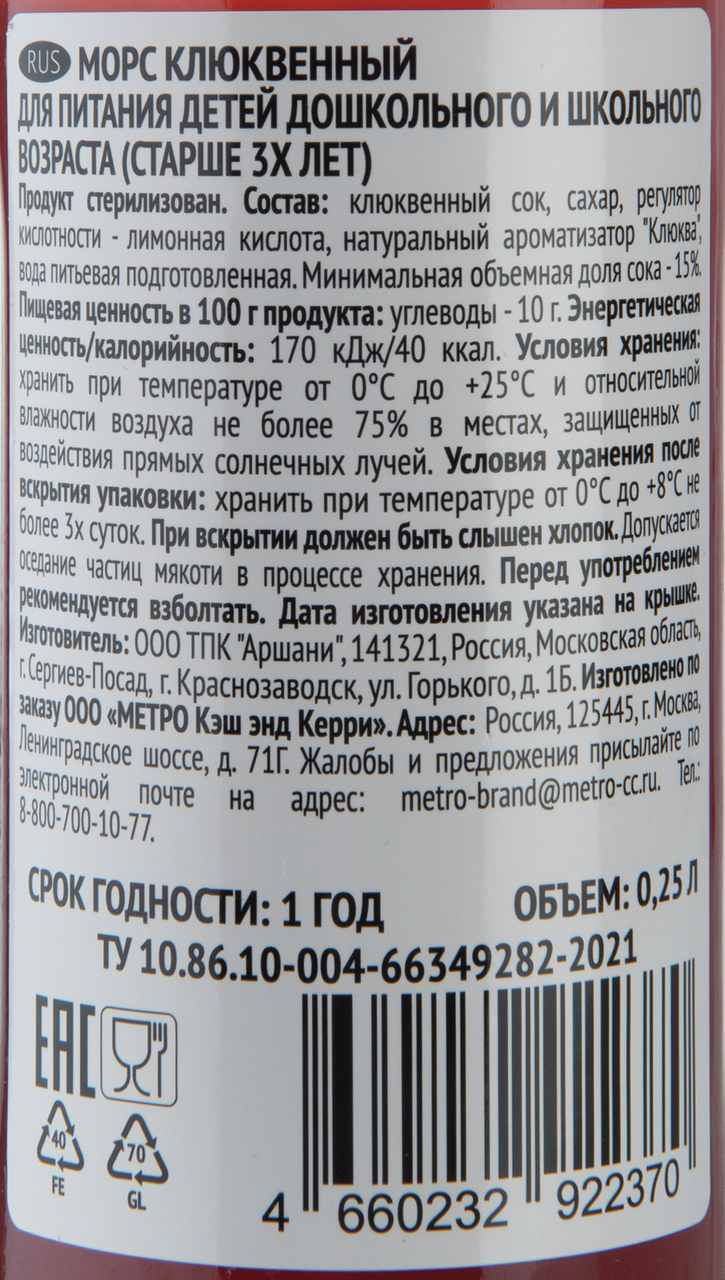 Поможет освежиться в жаркую погоду и зарядиться природной пользой натуральных спелых ягод круглый год. Напиток не содержит красителей, консервантов и других синтетических добавок.