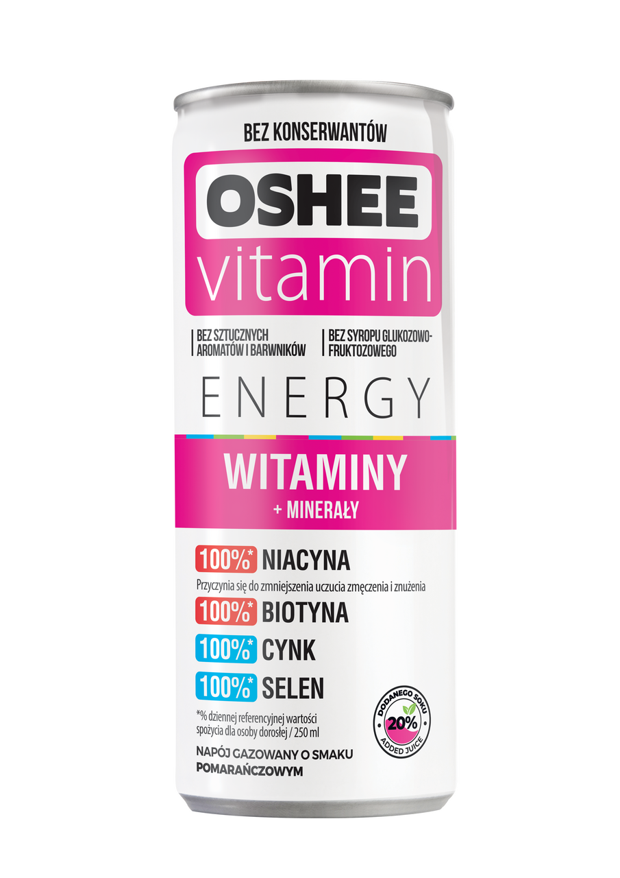 Напиток с апельсиновым вкусом и экстрактом Женьшеня. В одной баночке содержится дневная доза цинка, селена, биотина и никотиновой кислоты (ниацина). Подходит для веганов и для вегетарианцев. Приобрести Напиток Oshee витаминный витамины и минералы, 250мл x 24шт можно в торговом центре METRO.