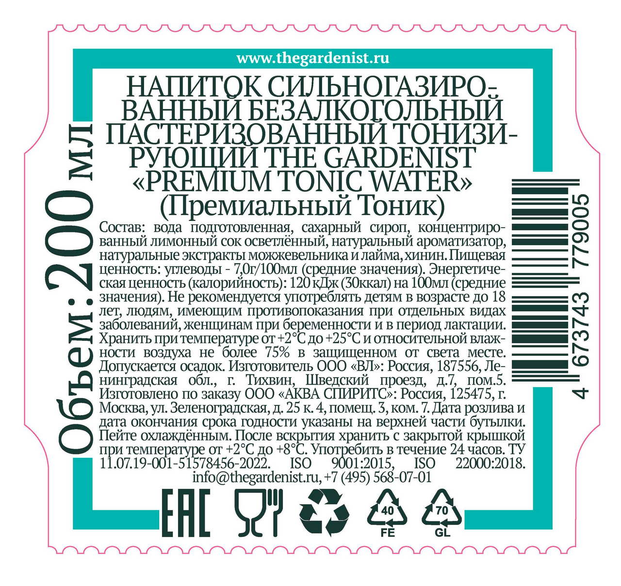 Напиток The Gardenist Индиан тоник газированный, 200мл x 20 шт - классический индиан тоник со свежими нотами цитрусовых и деликатной горечью натурального хинина. Естественный сок лимона в сочетании живых экстрактов можжевельника и лайма, придают напитку богатую и благородную палитру вкуса. Напиток превосходно освежает и является универсальным для смешивания в любых коктейлях с тоником, особенно с сухим джином или водкой.