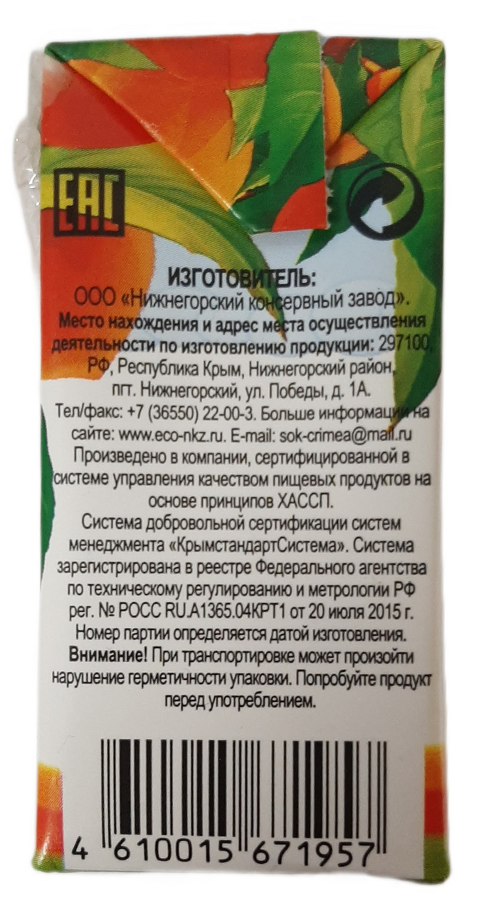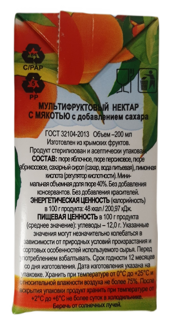 Нектар Соки Крыма Мультифруктовый, 200мл из местных фруктов по технологии прошлых лет СССР, ГОСТ-стандарт.