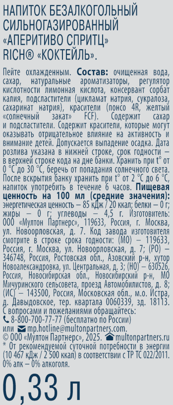 Напиток Rich Аперитиво Спритц газированный, 330мл