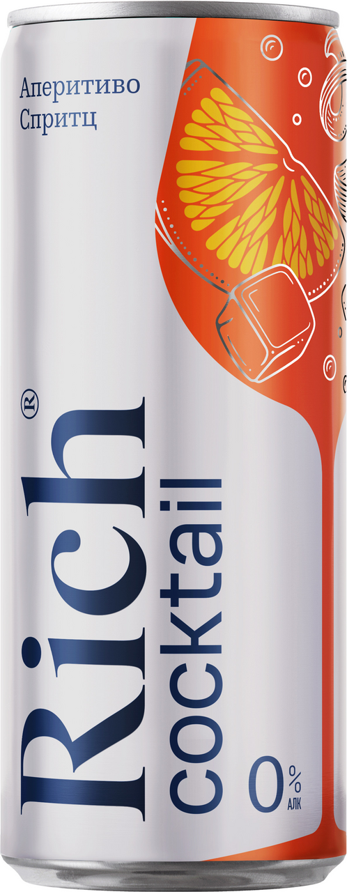 Напиток Rich Аперитиво Спритц газированный, 330мл x 12 шт - это сильногазированные напитки высокого качества с особенным вкусом для настоящих ценителей. Попробуйте новинку Rich Аперитиво - это безалкогольный коктейль с пониженной калорийностью и утончённым характером для тех, кто выбирает сложные вкусы и эстетичные моменты. Оцените изысканное сочетание насыщенных нот апельсина, благородной травяной горчинки и деликатных оттенков игристого вина, создающих гармоничный, многослойный вкус. Идеально подходит для самостоятельного потребления, а также для приготовления коктейлей.