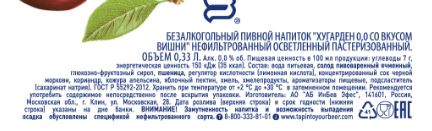 Вода питьевая, солод пивоваренный ячменный, глюкозно-фруктозный сироп, пшеница, регулятор кислотности (лимонная кислота), концентрированный сок черной моркови, кориандр, кожура апельсина, яблочный пектин, хмель, хмелепродукты, ароматизаторы пищевые, подсластитель (сахаринат натрия).