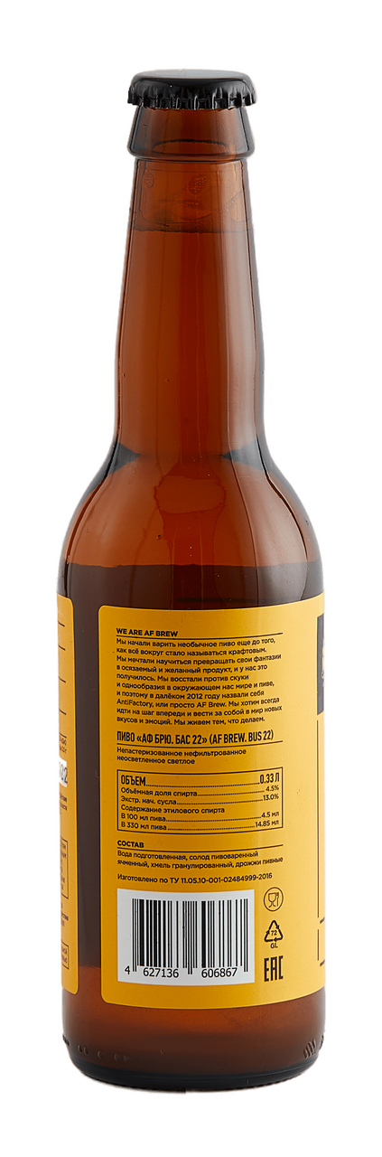 Нефильтрованное, непастеризованное пиво в стиле чешский Пилснер крепостью в 4,5% и горечью в 30 IBU. Название пива указывает на один из маршрутов автобуса, связанный с теплыми, ностальгическими воспоминаниями пивоваров. Bus 22 обладает легким, ненавязчивым вкусом с приятной горчинкой и легкой фруктовой сладостью в аромате.