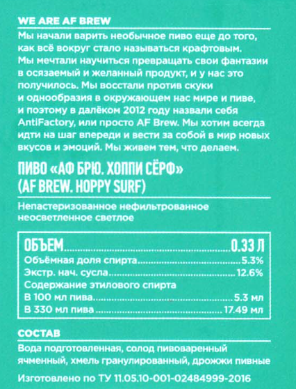 Пиво AF Brew Hoppy Surf, 0.33л