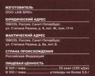 Вода подготовленная, солод пивоваренный ячменный, хмель гранулированный, дрожжи пивные.