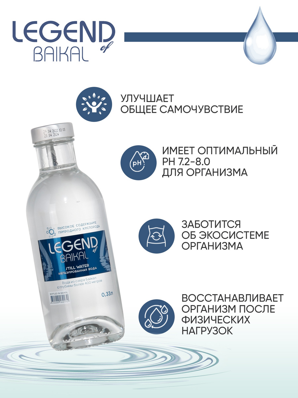 Вода Legend of Baikal негазированная, 330мл x 12шт