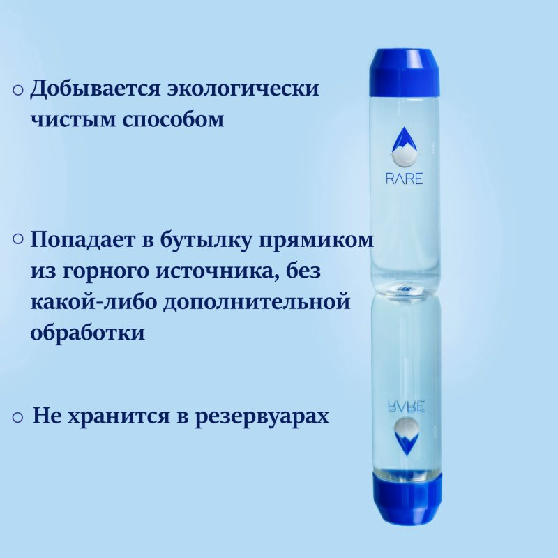 Эта безупречно чистая вода добывается из чудесной горы Акналер (что значит гора водных источников) живописного горного хребта Памбак в Армении. Хорошо сбалансированная омолаживающая вода с низкой и средней минерализацией придаёт Rare характерную мягкость и приятный вкус. Нетронутая ни человеком, ни какими-либо искусственными изобретениями, чистейшая вода течёт из источника прямо в бутылку, без какой-либо дополнительной обработки.
