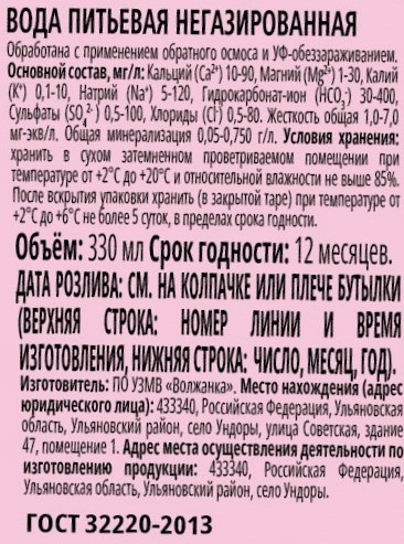 Вода питьевая негазированная, выпускается по ГОСТ 32220-2013.
