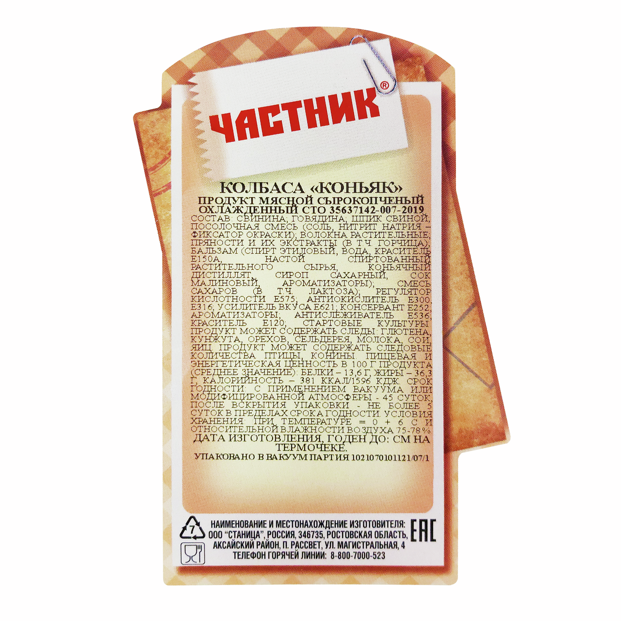 Колбаса Частник Коньяк сырокопченая, ~300г