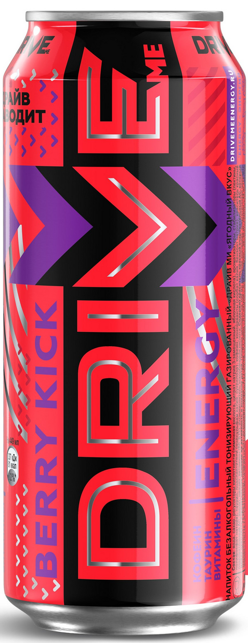 Безалкогольный энергетический напиток со вкусом ягод. Содержит кофеин, который стимулирует умственную деятельность, повышает скорость реакции и концентрацию внимания. Витамины группы B играют важную роль в функционировании нервной системы, участвуют в обмене веществ и энергии. Drive me заводит! Drive Me - напиток безалкогольный тонизирующий энергетический газированный ароматизированный. Пастеризованный. Заряжает энергией, чтобы оставаться на драйве. Всегда. Драйв ми заводит. Drive Me - это бренд для тех, кто всегда на драйве. Драйв - это то, что внутри тебя, где у других все выходит из-под контроля и трясутся поджилки, ты чувствуешь прилив сил и энергии. Ничто не сможет тебя остановить!