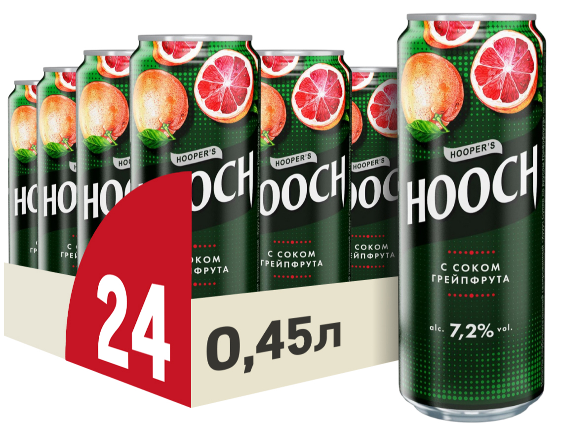 Напиток Hooch супер со вкусом грейпфрута слабоалкогольный, 0.45л x 24 шт