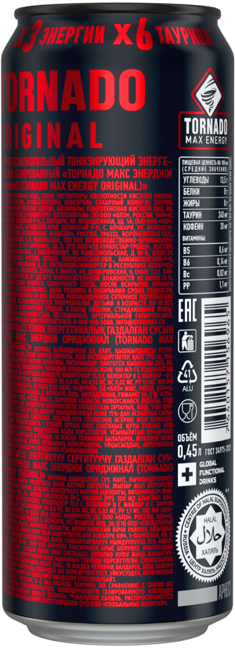 Напиток энергетический Tornado Max Energy Original, 450мл