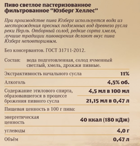 Классический лагер в немецком стиле, с лёгким солодовым ароматам и слабыми хмелевыми нотами.