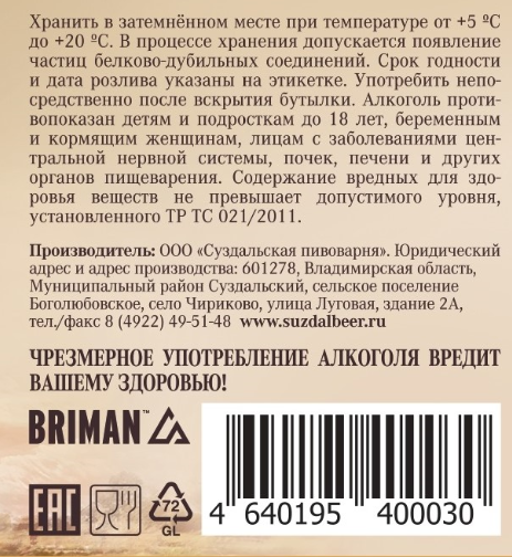 - Крепость, % 4.5