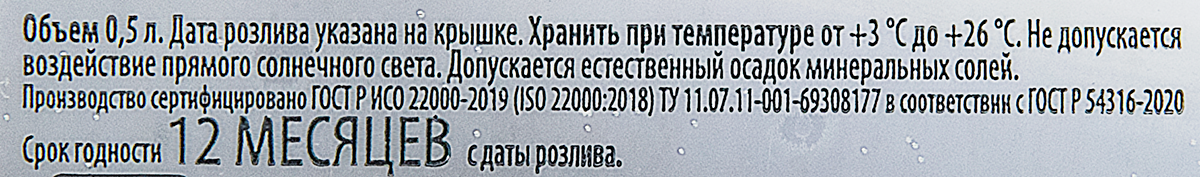 - Степень газирования Среднегазированная