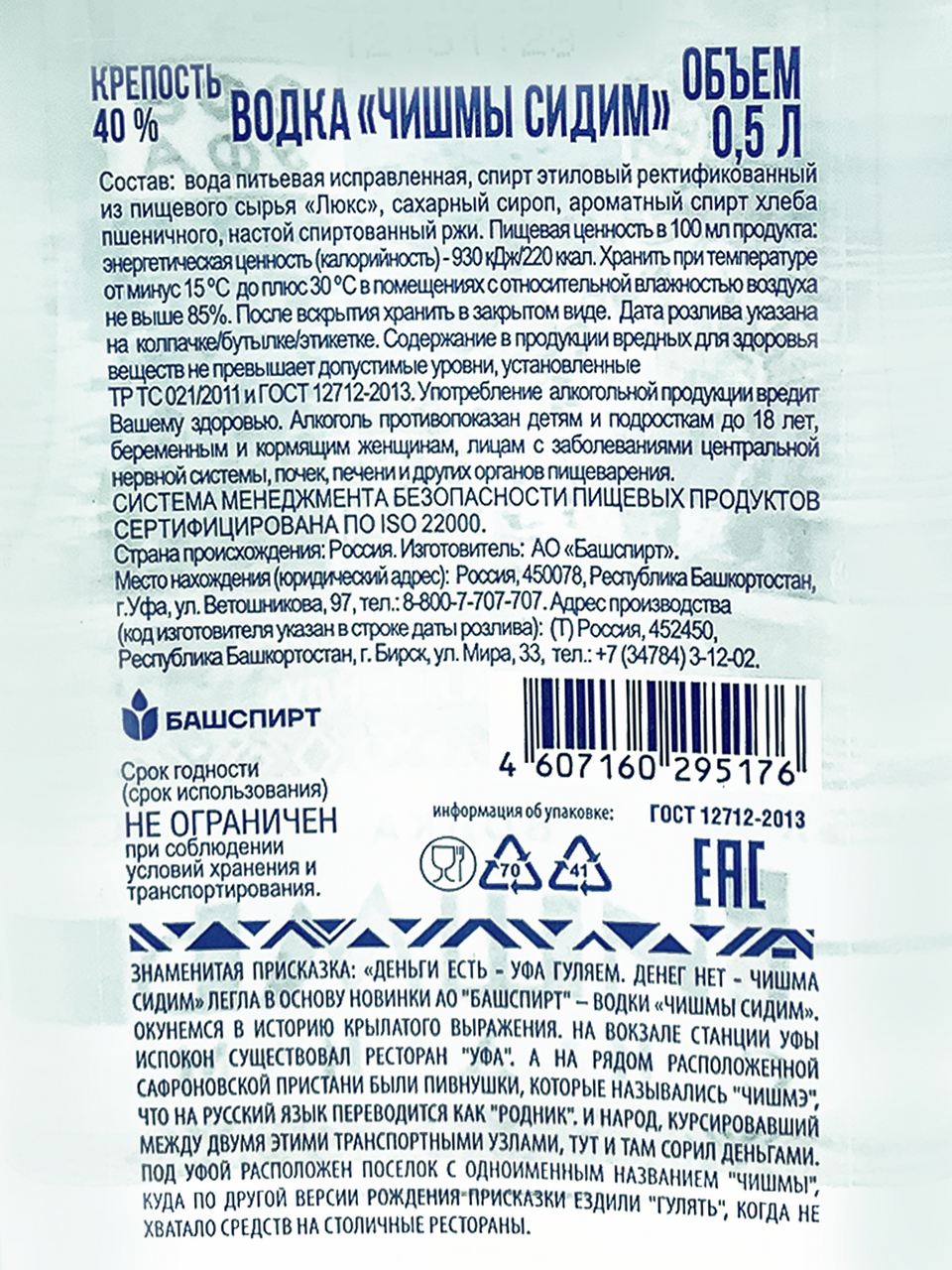 Долгожданная новинка от компании Башспирт - водка Чишмы сидим - практически сразу после проявления в продаже привлекла внимание покупателей. Помимо высоких потребительских качеств напитка, его безусловным конкурентным преимуществом стали этикетка и упаковка. Их разработал карикатурист Камиль Бузыкаев, широко известный остроумными карикатурами о политике, общественной жизни, спорте и культуре.