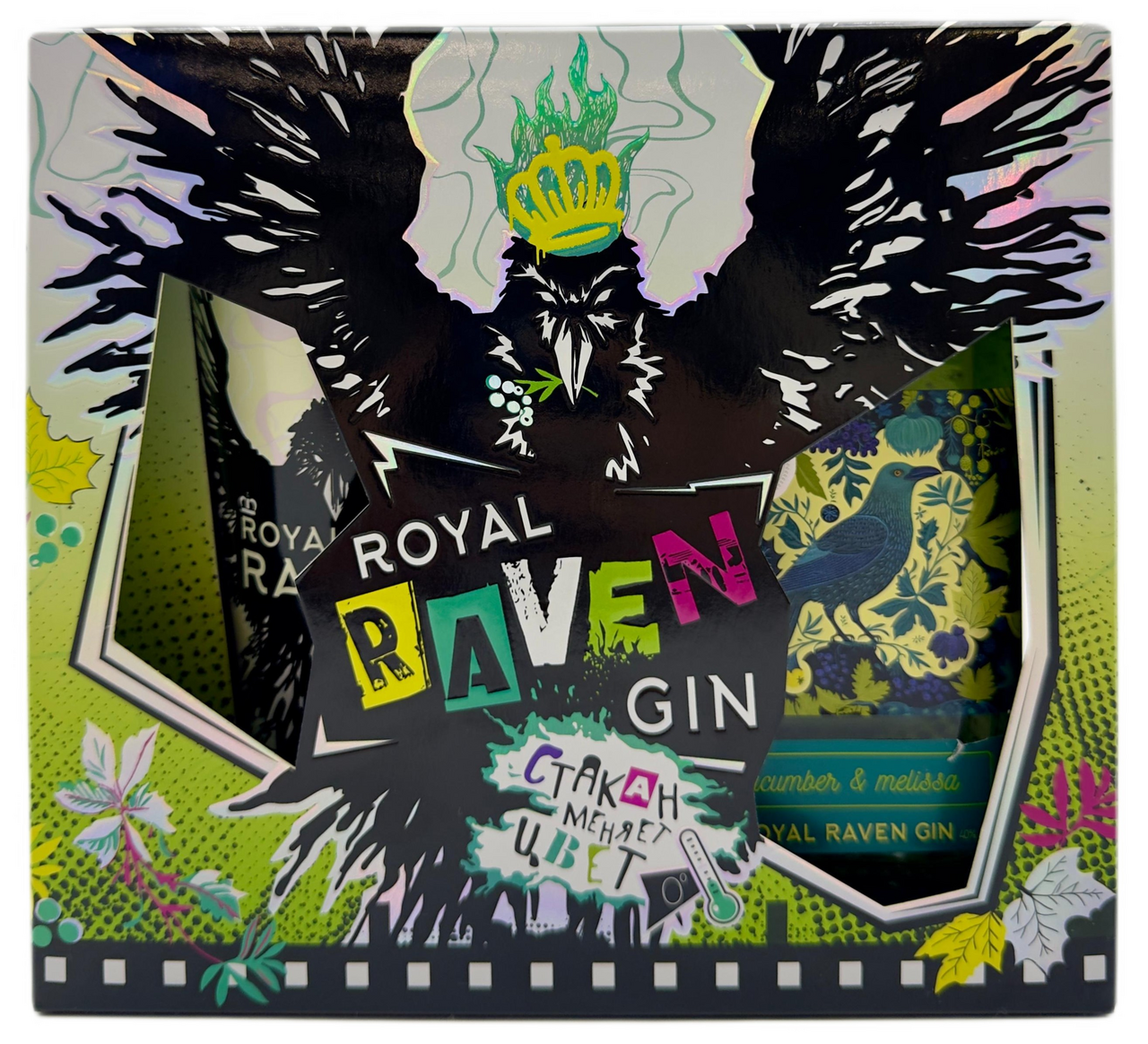 Джин Royal Raven Огурец и мелисса в подарочной упаковке со стаканом, 0.5л