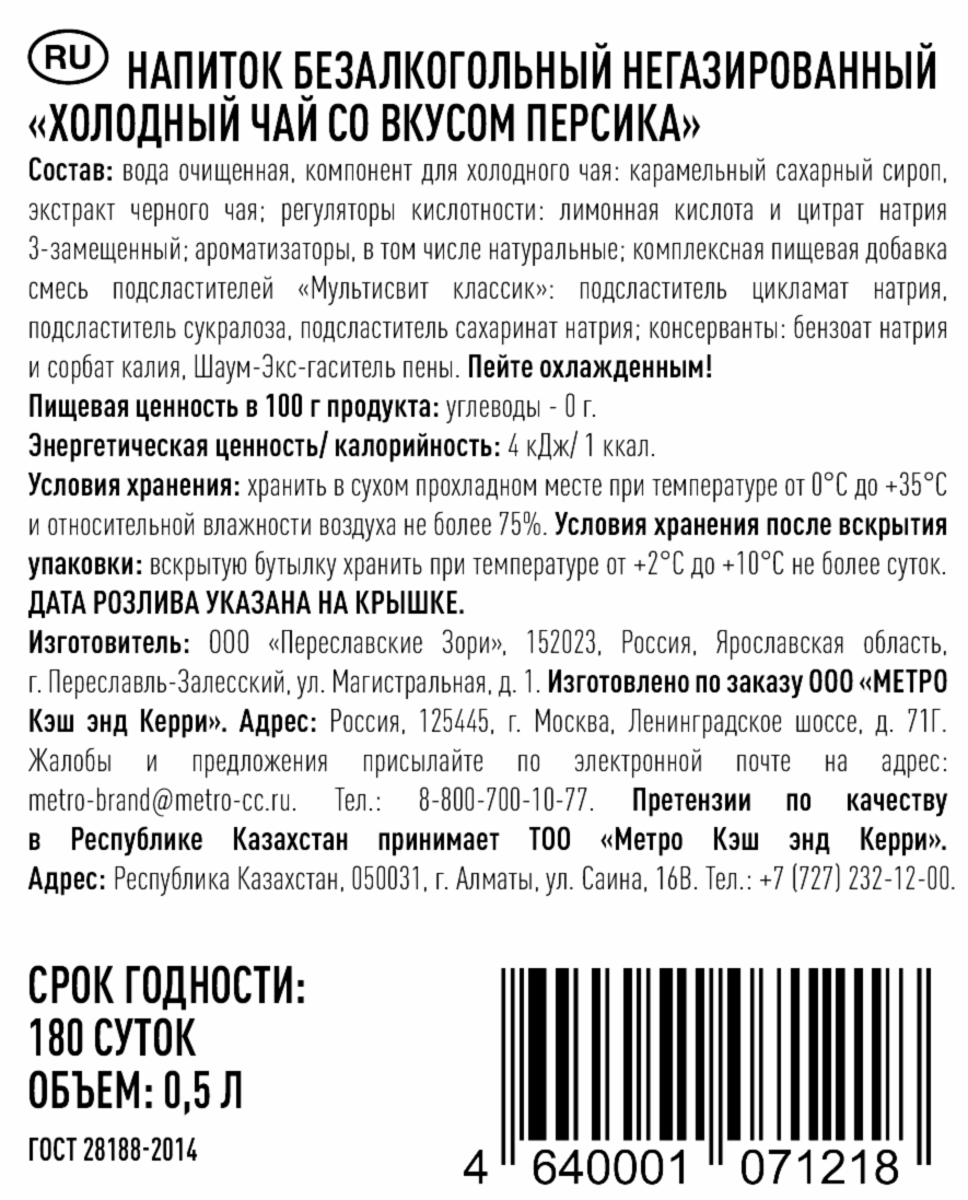 RIOBA Чай холодный персик, 500мл изготовлен на основе натурального чайного экстракта из чайных листьев. Имеет в своем составе природные компоненты - чайные антиоксиданты, что делает его употребление полезным для здоровья, а свежий аромат и вкус персика подарит приятное послевкусие. Рекомендуется пить охлажденным. Это холодный черный чай со вкусом персика, который отлично освежает жарким летним днем.