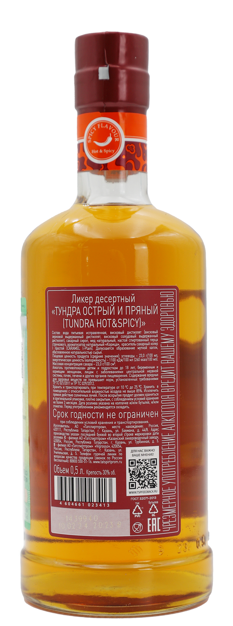 Tundra Hot & Spicy –ликер на основе вискового дистиллята, с манящим ароматом корицы и яркой палитрой вкуса - от сладости, переходящей в пряность,до приятной жгучести.