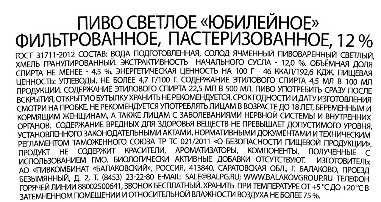 Пиво Пивкомбинат Балаковский Юбилейное светлое, 0.5л
