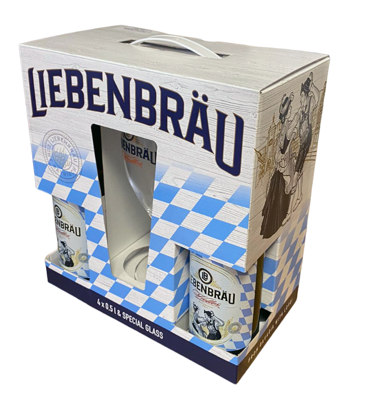 Промо-набор Пиво Liebenbrau + бокал, 0.5л x 4 шт варится в соответствии с Законом о чистоте пивоварения от 1516 года из натурального хмеля и солода, выращиваемых и производимых в Баварии. Яркий, запоминающийся дизайн этикетки отражает дух и настроение традиционного баварского праздника. Создавая новую марку пива, владельцы пивоварни Kaiser Brau, не задумываясь, решили назвать его любимое пиво, поскольку педантичное следование новейшим технологиям и старым, добрым традициям пивоварения делают напиток вкусным, родным и любимым.