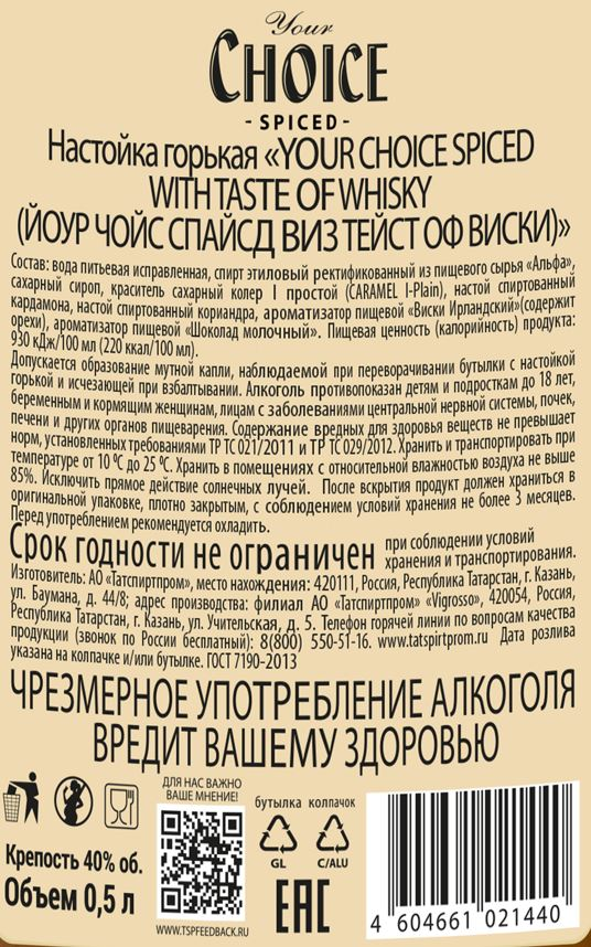 Напиток спиртной Your Choice Spiced with taste of whisky, 0.5л