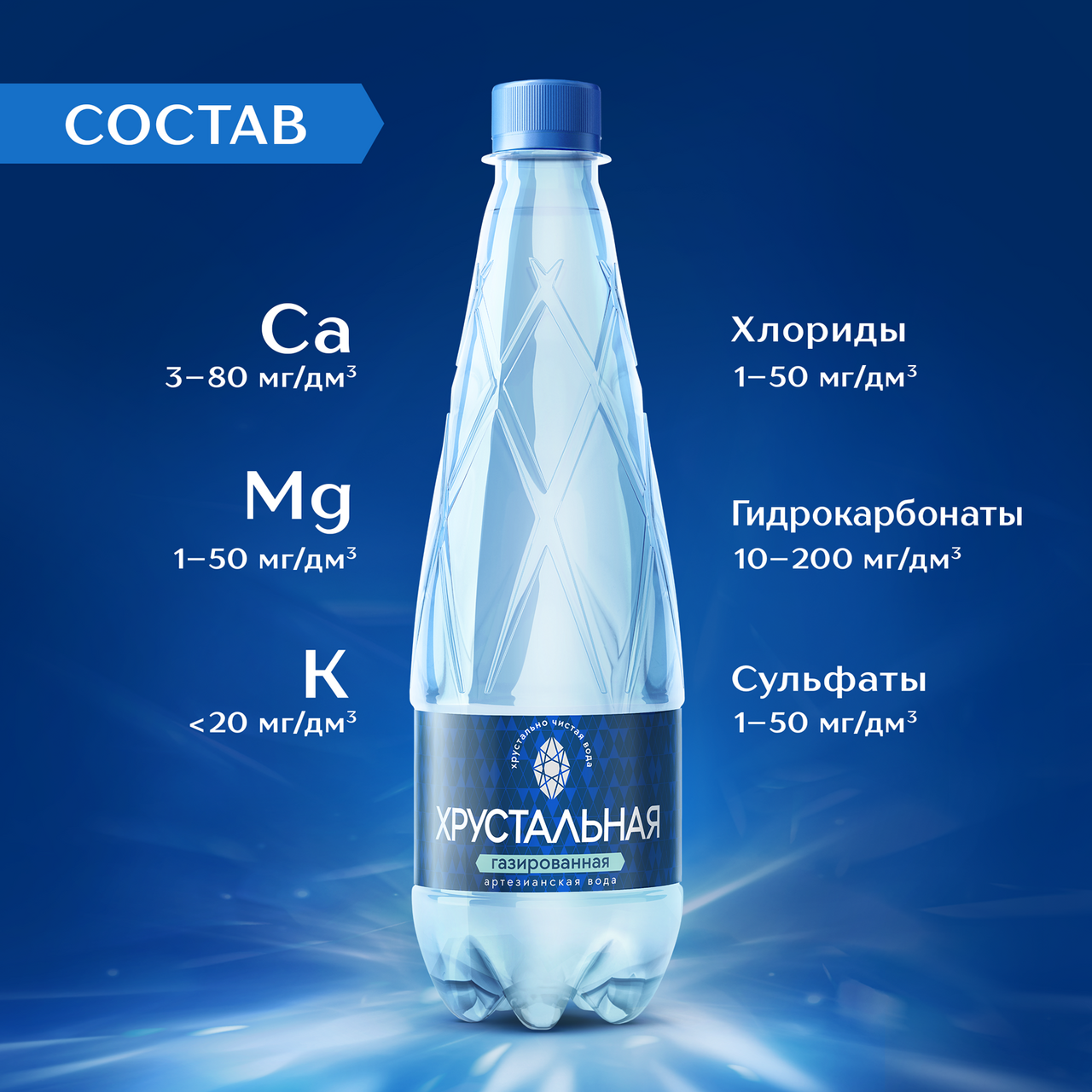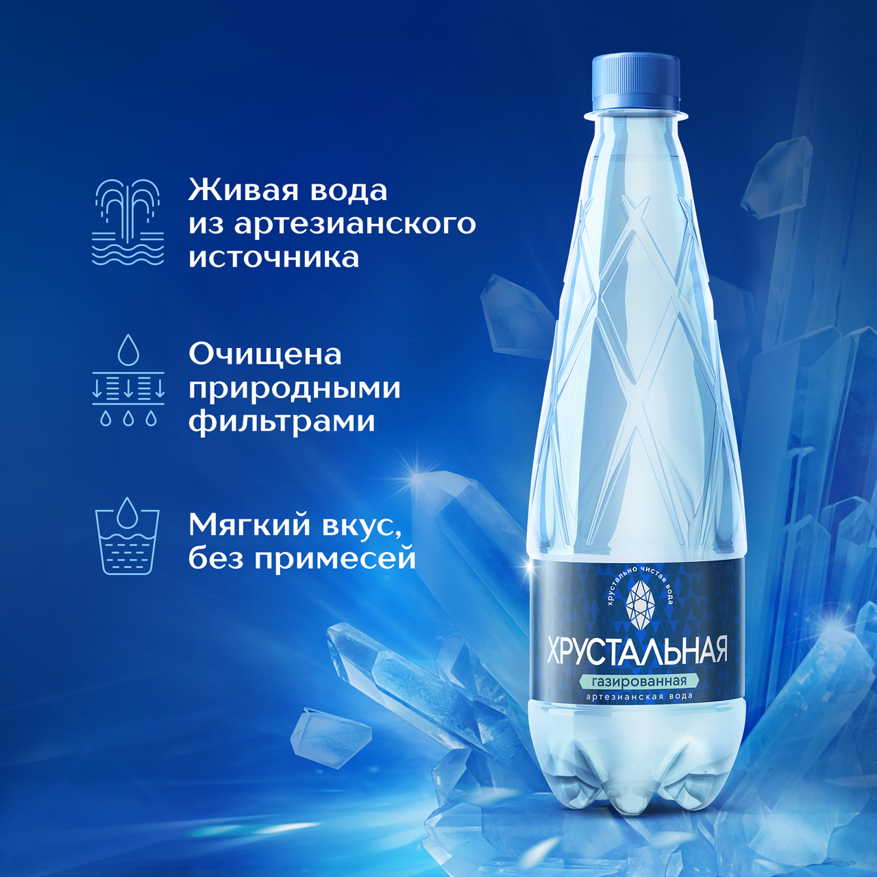 Вода Хрустальная газированная, 500мл x 12 шт - это не просто питьевая вода, а эстетичное и утонченное решение для повседневной заботы о вашем здоровье. Это высококачественная питьевая природная вода, прошедшая специальную очистку, чтобы предложить вам идеальный мягкий вкус и полезные свойства. Это слабоминерализованная вода с низким уровнем жесткости 0,2-0,4мг/экв/л, что дарит ей особую мягкость. В процессе добычи вода из скважины проходит через сложную систему фильтрации от предварительной очистки, при которой происходит удаление грубых примесей. Благодаря этому достигается необходимая чистота, прозрачность и вкус продукции.