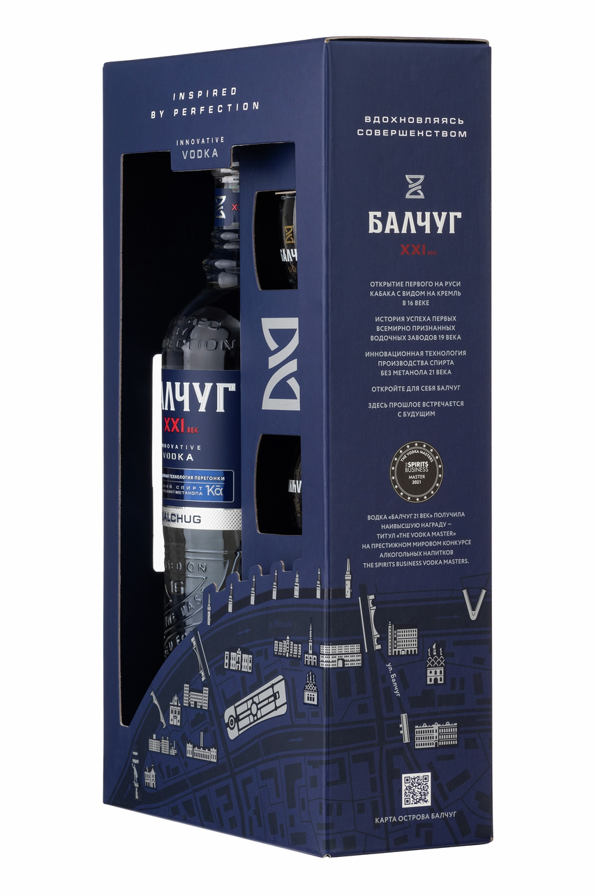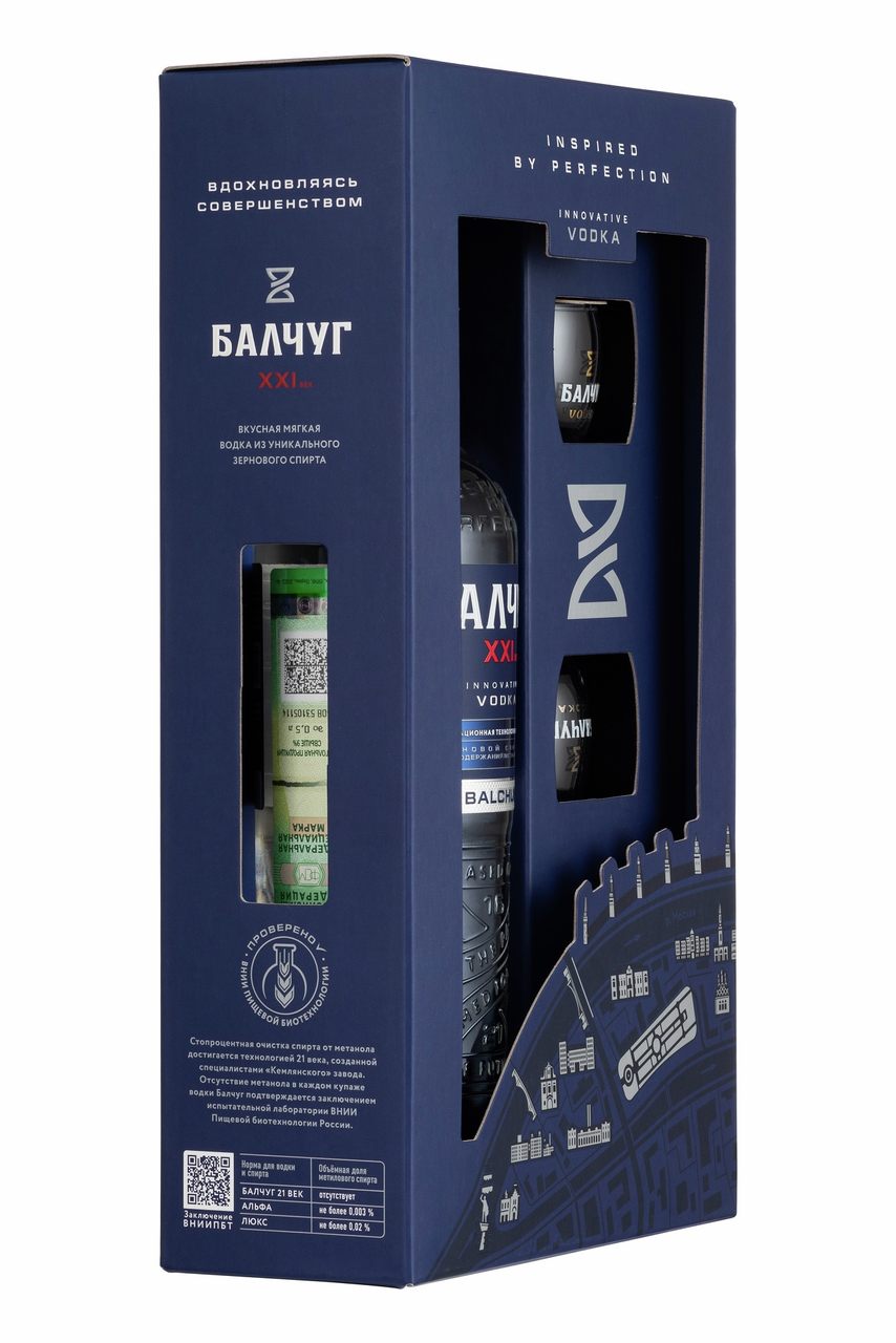 Водка Балчуг XXI век + 2 стопки в подарочной упаковке, 0.5л