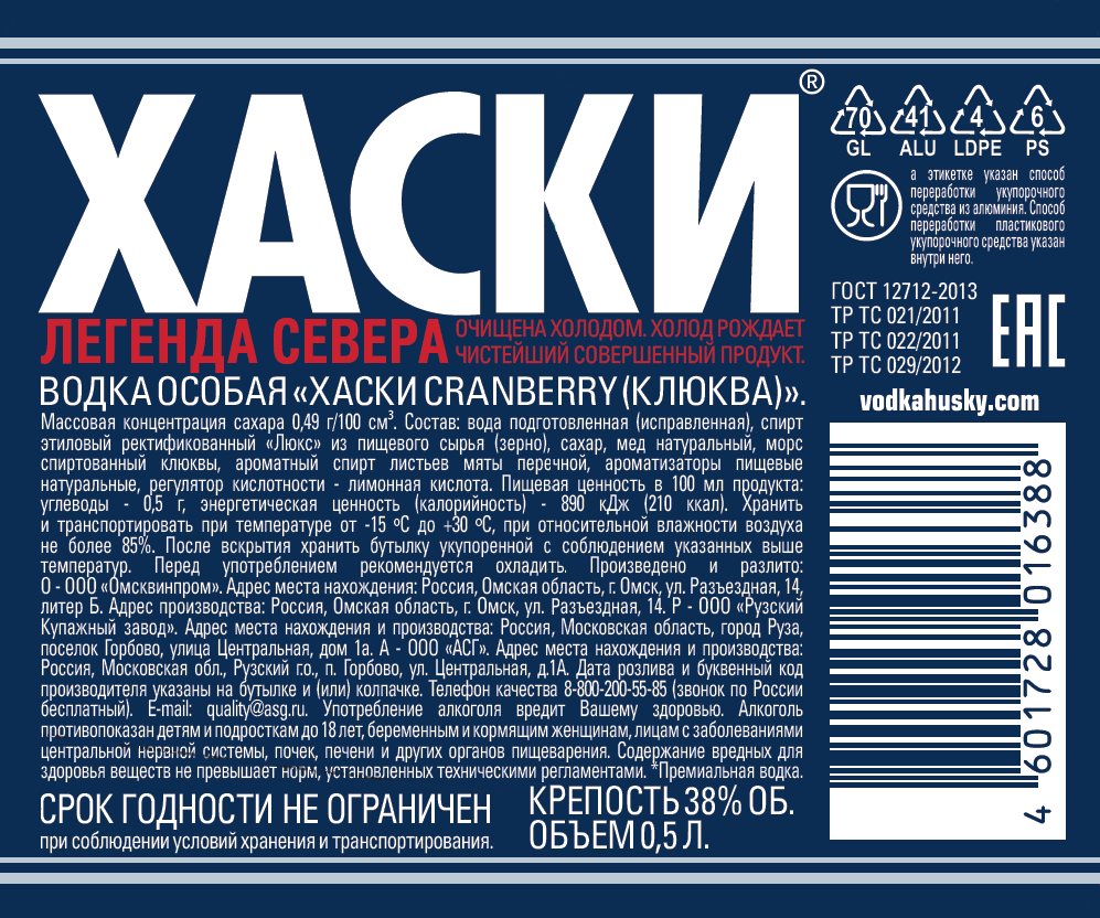Использование натуральных компонентов и кристально чистой сибирской воды, очищенной холодом, позволяет создать напиток с особой свежестью и мягкостью. Специальная добавка из спиртованного морса клюквы, которую в этих местах называют северным лимоном, награждает водку тонким ягодным ароматом и легкой сладостью. Отличительной чертой, а также символом водки является след собачьей лапы на бутылке. Это запатентованная интеллектуальная собственность, удостоенная награды на международном дизайнерском конкурсе Pentawards.
