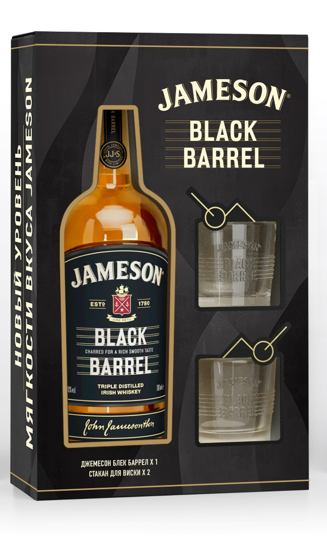 Виски Jameson Black barrel + 2 стакана в подарочной упаковке 0,7 л