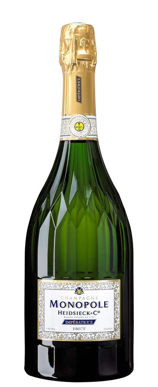 Вино игристое Heidsieck & Co Cuvee Imperial – это алкогольный напиток золотистого цвета, который обладает ярко выраженным, сбалансированным вкусом с нотками фруктов. Послевкусие длительное, сладковатое. Аромат – насыщенный и приятный. Шампанское хорошо подходит в качестве аперитива. Напиток идеально сочетается с морепродуктами, рыбой, мясом, птицей, ягодами, фруктами. Его можно употреблять как в чистом виде, так и с добавлением небольшого количества льда. Игристое вино следует наливать в бокал вытянутой формы не более чем на три четверти.В производстве напитка используется три популярных сорта винограда, которые выращивают на виноградниках в регионе Шампань. Урожай собирают только по достижению зрелости. Шампанское выдерживается не меньше трех лет в защищенных от солнца местах. Компания Heidsieck & Co основана в 1785 году. В 1885 году она продала огромное количество бутылок игристого вина в Великобритании, а в 1912 году – в России. В начале 20 века компания стала одним из лидеров на мировом рынке по производству шампанского.