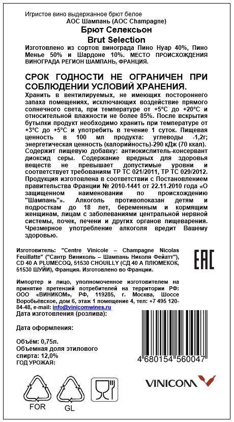 Шампанское белое полусухое Nicolas Feuillatte в подарочной упаковке от Шампанского Дома Nicolas Feuillatte (Франция) изготовлено купажированием из сортов винограда Пино Нуар (40%), Шардоне (10%) и Пино Менье (50%), собранных с лучших участков Premier Cru и Grands Crus, с добавлением малой доли резервных вин. Такой выбор создал вибрирующую и динамическую смесь. Гармоничное сочетание для элегантности и утонченности сорта Шардоне, для округлости и структуры Пино Нуар, а для фруктовости и мягкого, податливого характера Пино Менье компенсировало сладкий характер вина. По мнению виноделов, это современный и очень самобытный, отличительный по стилю, с твердым акцентом на свежесть и очень точный, с точки зрения купажа и сладости, Demi-Sec сияет живостью и жизненной силой. Главный винодел Дома Гийом Роффьен (Guillaume Roffiaen) адаптировал уровни дозировки к вину, чтобы усилить вкус и аромат, а выбор резервных вин имел решающее значение. Все элементы выравниваются, чтобы создать идеально сбалансированные шампанские вина, отражающие их происхождение. Ручной сбор идеально спелого винограда продолжился его винификацией раздельно по сортам и с каждого участка. Шампанское изготовлено традиционным способом и выдерживалось в подвалах на осадке не менее 2 лет, чтобы в нем засветилась бодрость и жизненная сила. После дегоржажа в необходимых пропорциях добавлялись сахар, дозажный ликер или резервное вино. В винах Nicolas Feuillatte особое значение имеет резервное вино, поскольку оно привносит завершающий штрих и придает баланс и тонкую настройку текстуры и тональности. Резервное вино всегда адаптируется к каждому отдельному кюве, чтобы гарантировать особый стиль, и каждый ликер отличается, чтобы оставить свой след в конечном шампанском. По словам главного винодела Дома Гийома Роффьена, резервные вина создадут будущие кюве, тщательно выдержанные в погребах. Эти вина прошлых лет одновременно представляют собой основу, видение и консистенцию шампанского, драгоценную пряность, которая будет поддерживать ароматический и структурный потенциал вин определенного года. Шампанский Дом Nicolas Feuillatte носит имя основателя – Николя Фейатта. Непростая судьба бизнесмена привела однажды Николя к покупке в 1966 году первого виноградника площадью 12 гектаров недалеко от Реймса. В настоящее время Дом объединяет 4500 производителей. К 1986 году бренд Nicolas Feuillatte вошел в десятку импортных марок шампанского в США, а к 2016 году в дополнение к своему международному росту бренд зарегистрирован по всему миру и продолжает устойчивый рост. Шампанское Nicolas Feuillatte олицетворяет изысканность и неповторимый стиль Дома, определяемый точностью, элегантностью и утонченностью.