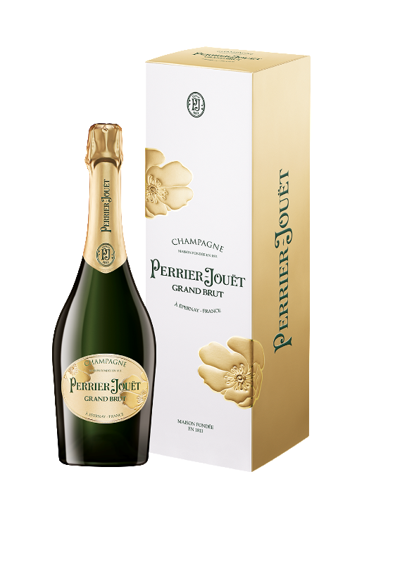 Шампанское Perrier-Jouet, Grand Brut — элегантная деликатность, выполненная в цветочном стиле с бриллиантовой точностью и тонкостью огранки. Композиция первого Гран Брют была основана на винограде сорта Пино Нуар, собранном с участков класса Гран Крю и Премье Крю терруаров Mailly, Verzy, A? и Rilly-la Montagne. В современной концепции купаж вина составляет 40% Пино Нуар с этих Крю, благородный и утонченный сорт придает шампанскому мягкую соблазнительную фруктовость. Затем в купаж были внесены ягоды этого же сорта, но собранные с терруаров Dizy, Damery, Venteuil, Vincelles и Vinay также в количестве 40% от общего ассембляжа. Добавление в бленд 20% винограда сорта Шардоне с Гран Крю Cramant, Avize, Le Mesnil и Chouilly привнесло во фруктово-цветочную композицию свежесть и минеральность. Для достижения совершенства, требуемого стандартами качества Перье-Жует, бутылки на протяжении минимум трех лет хранятся в прохладных меловых погребах винодельни, расположенной около авеню де Шампань