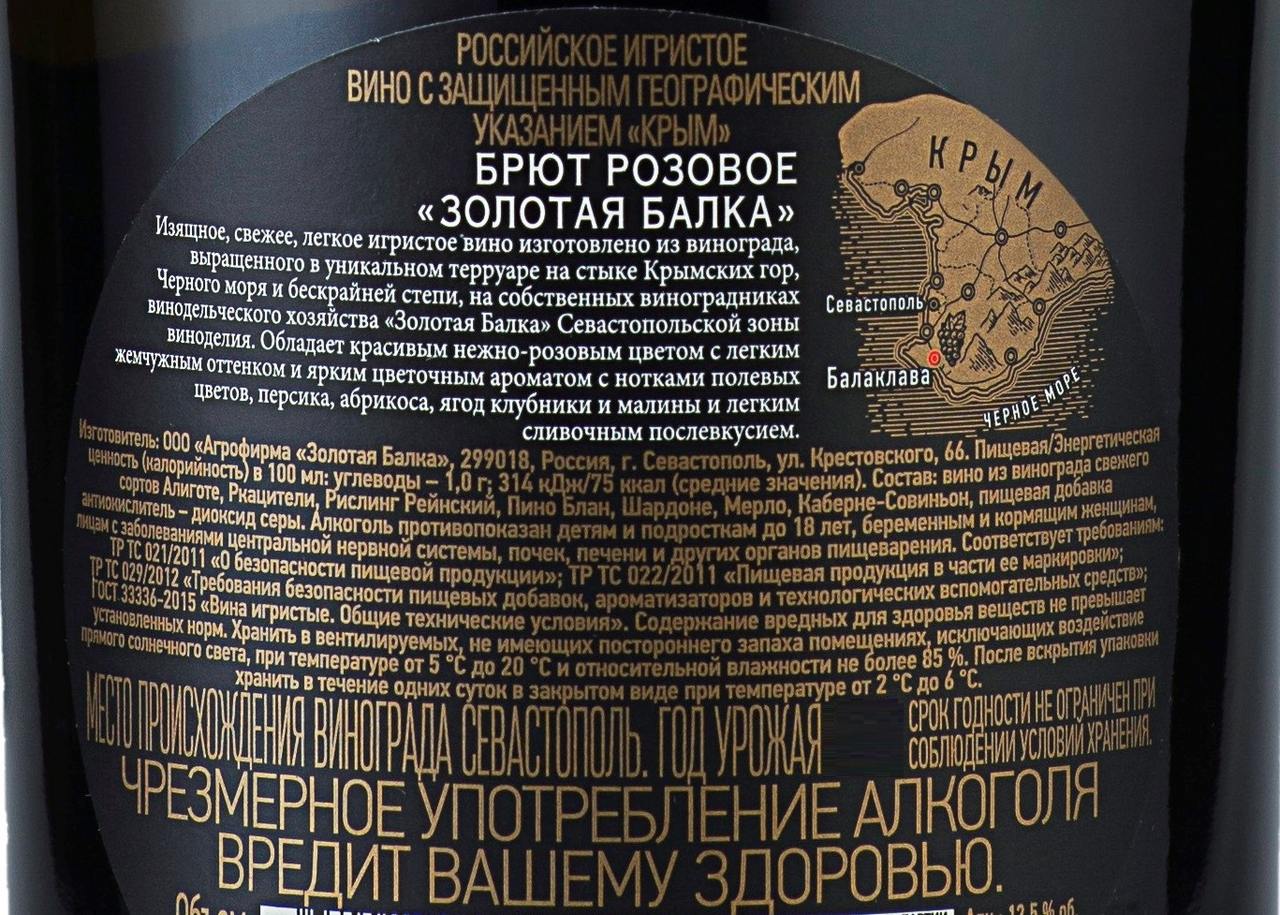 Игристое вино Золотая Балка розовое брют, 0.75л