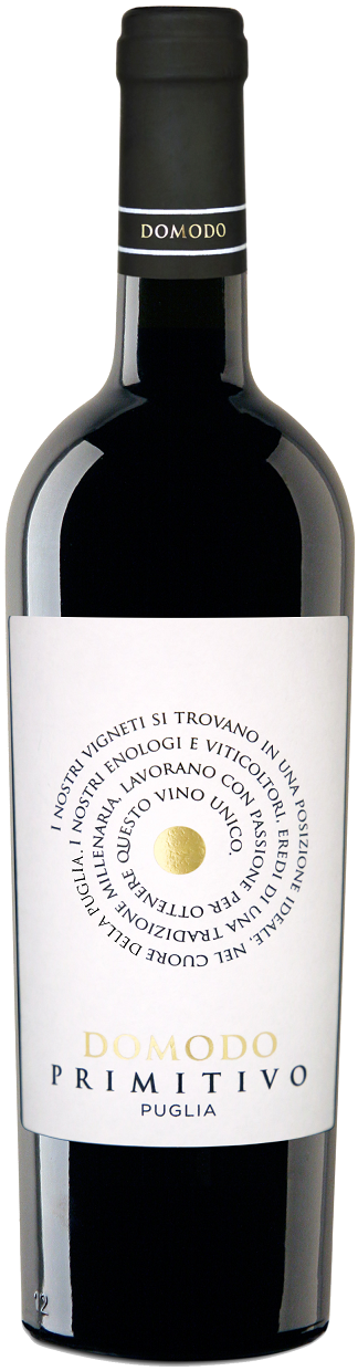 Domodo — линейка традиционных апулийских вин, изготовленных из региональных и международных сортов винограда, культивируемых в Апулии.Домодо Примитиво — хорошо сбалансированное, питкое, мягкое вино из винограда сорта Примитиво, изготовленное в современном стиле. Виноградники с Примитиво расположены в разных частях Апулии и культивируются с большой страстью и уважением к традициям. Урожай собирают вручную. После ферментации вино выдерживается в барриках из французского дуба в течение 6 месяцев