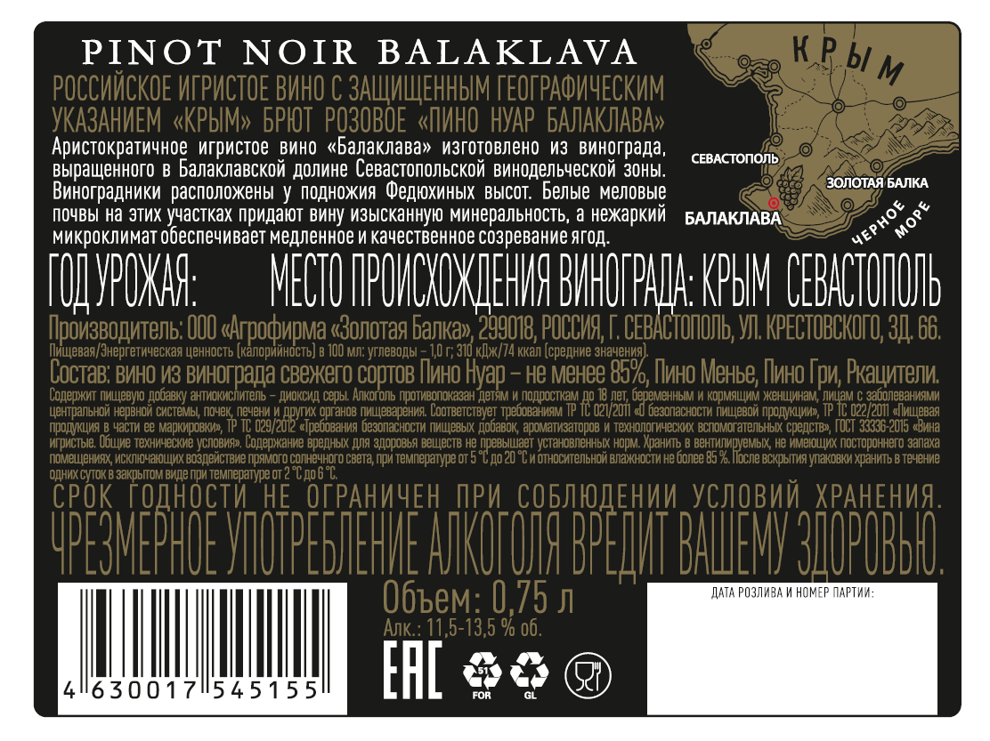 Вино игристое Балаклава Пино Нуар в подарочной упаковке розовое брют, 0.75л
