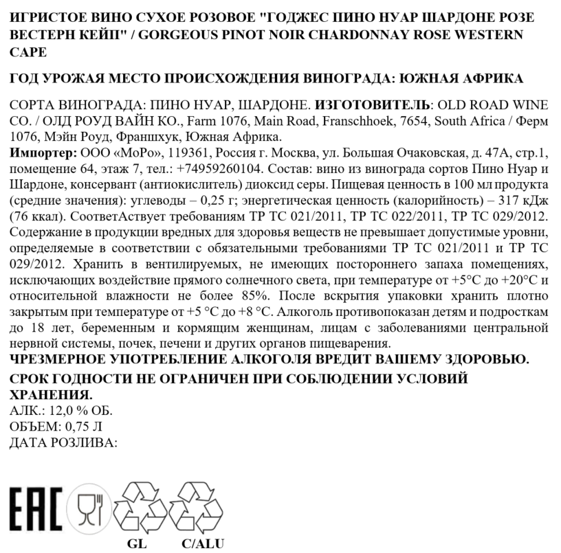 Вино игристое Gorgeous Pinot Noir Chardonnay Rose розовое сухое, 0.75л