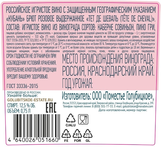 Вино игристое Tete De Cheval розовое брют, 0.75л