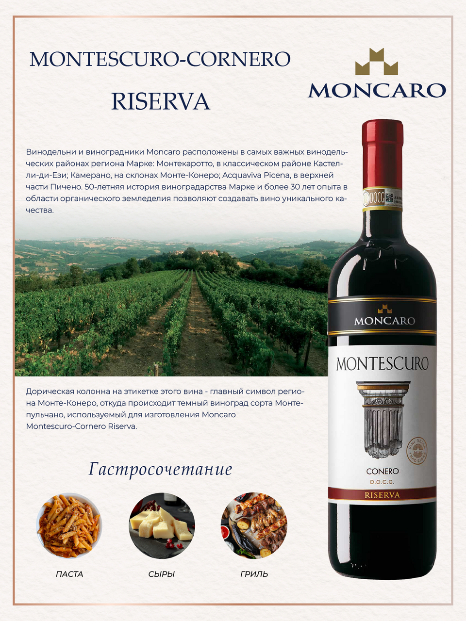 Вино Moncaro Montescuro Conero Riserva красное сухое, 0.75л