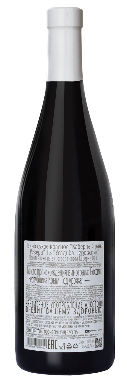 Вино Усадьба Перовских Каберне Фран Резерв красное сухое, 0.75л