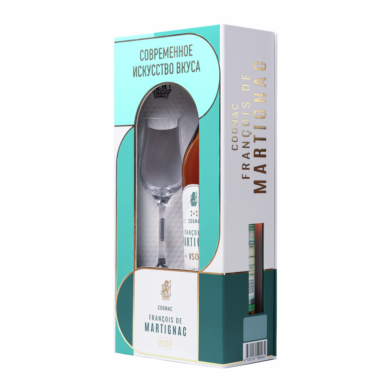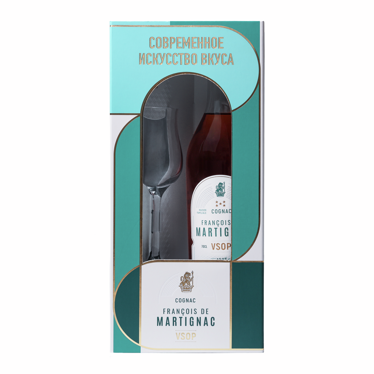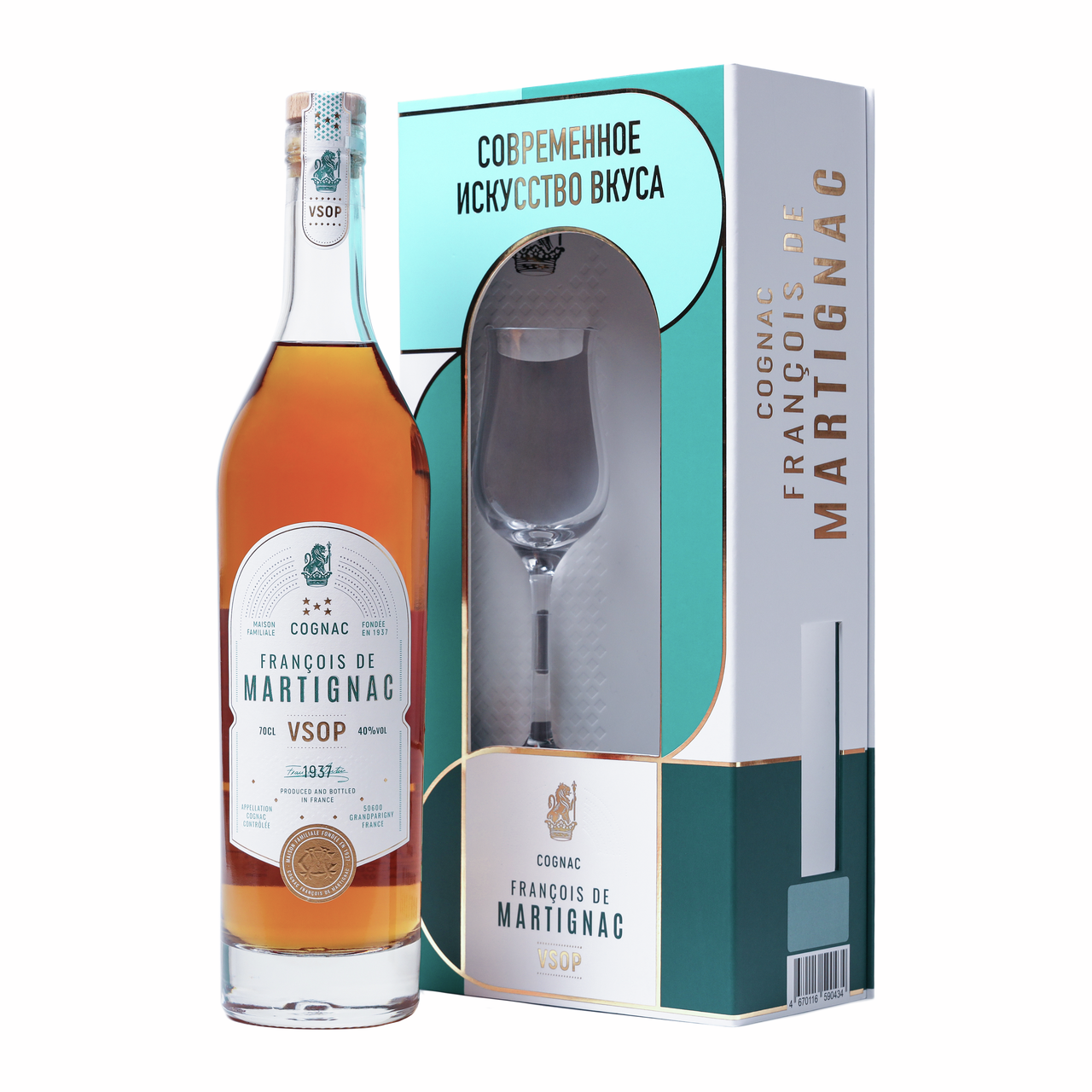 Коньяк Francois de Martignac VSOP с бокалом в подарочной упаковке, 0.7л
