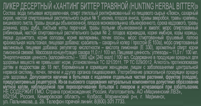 Ликер Beluga Hunting Bitter травяной, 0.7л
