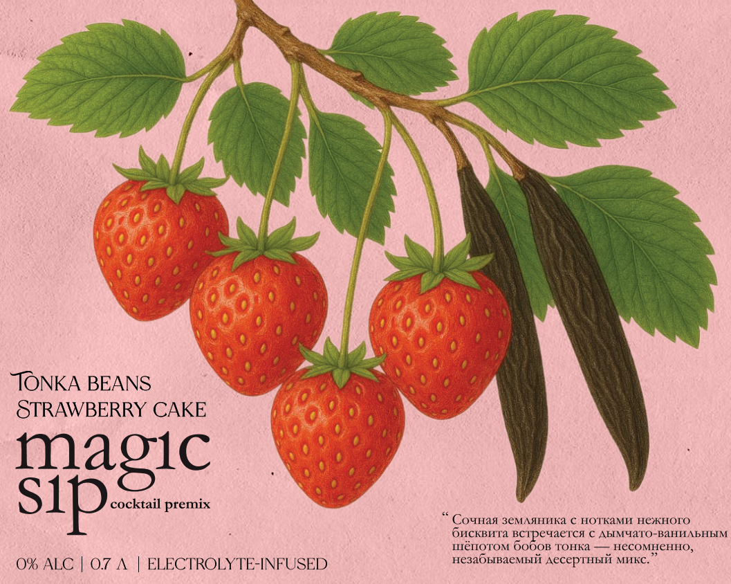 Основа для коктейлей Magic Sip Strawberry Cake and Tonka безалкогольная, 0.7л