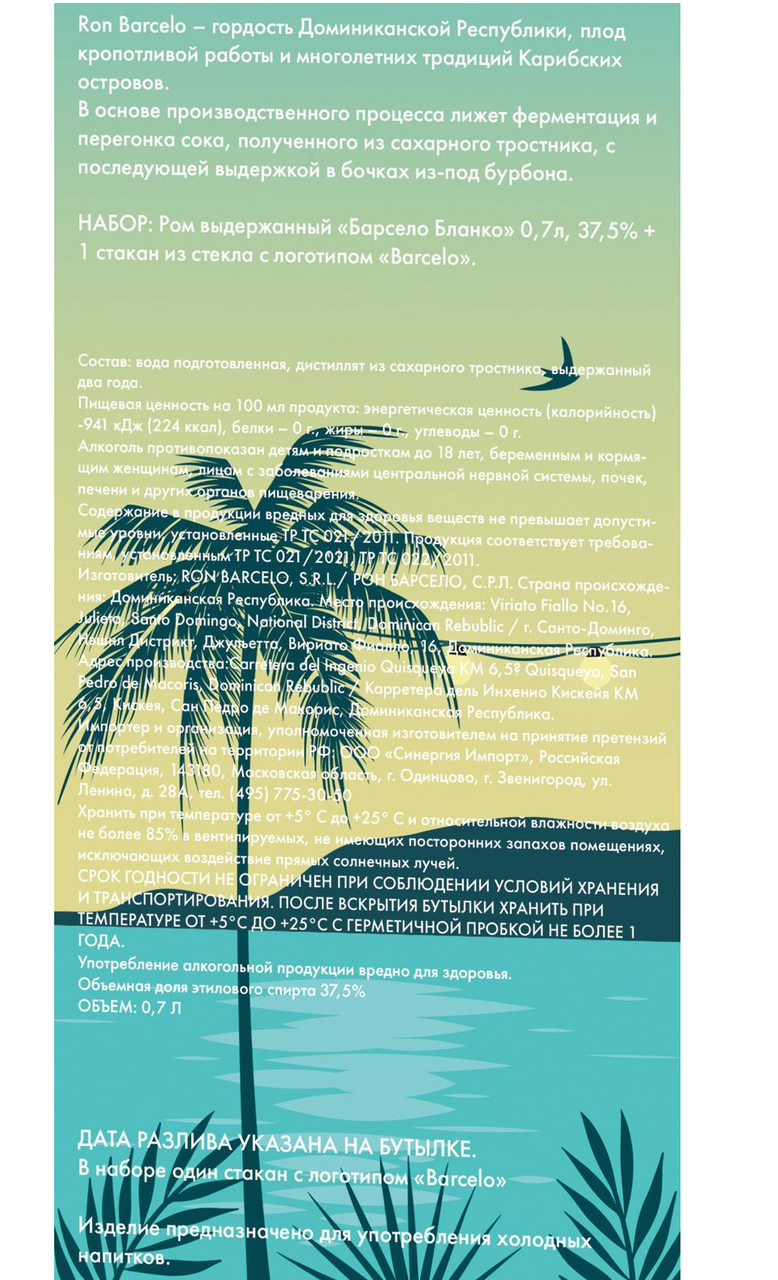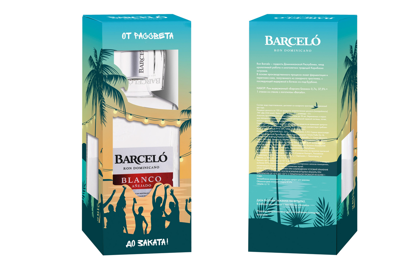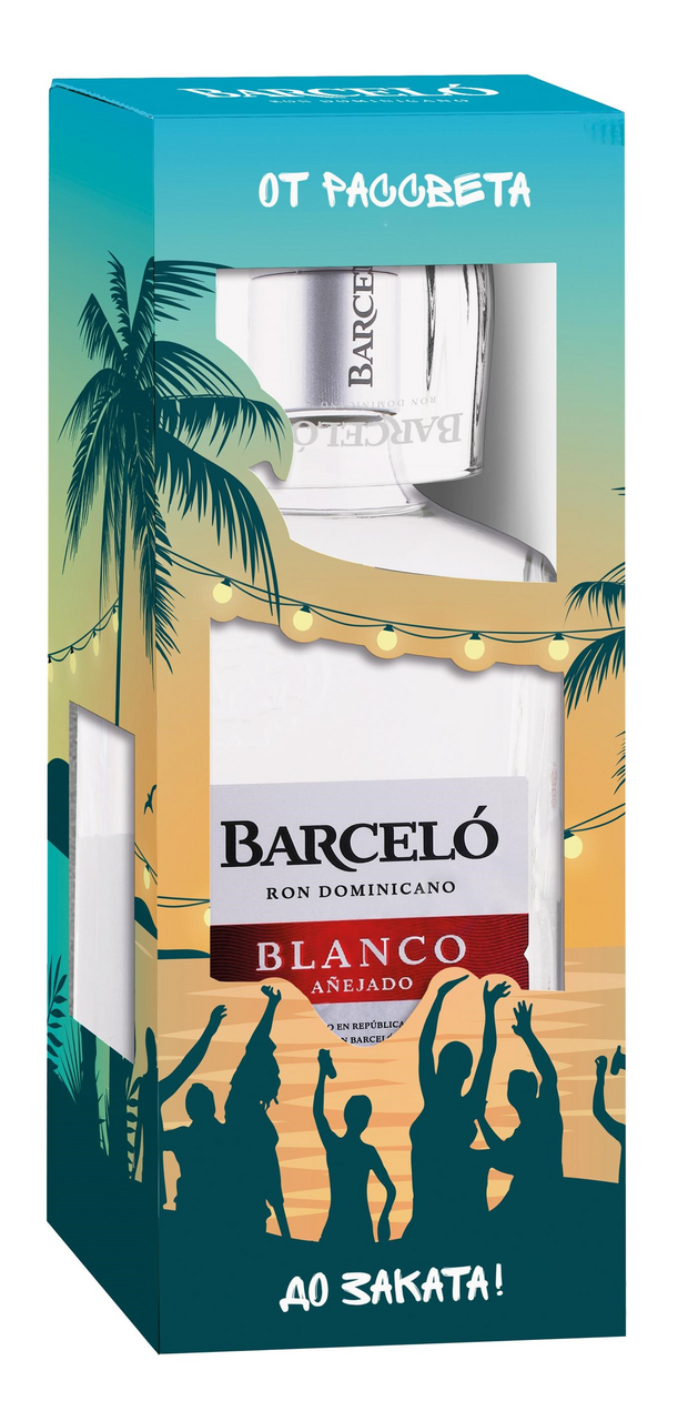 Ром Barcelo Blanco + стакан сверху в подарочной упаковке, 0.7л