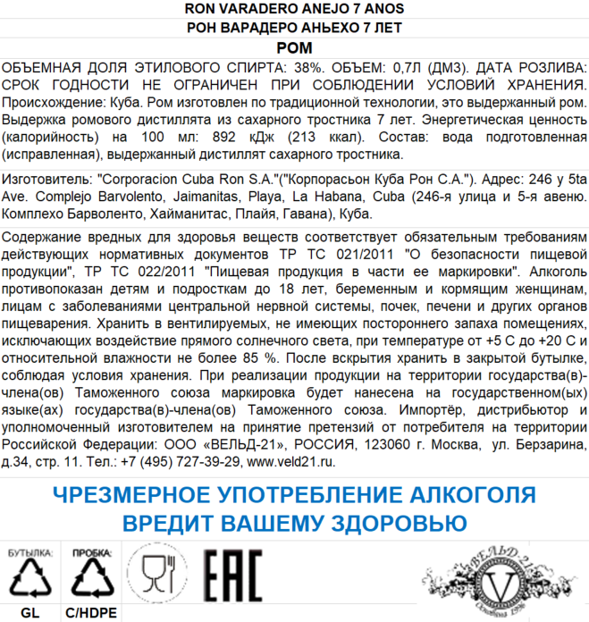 - Бренд VARADERO ANEJO
