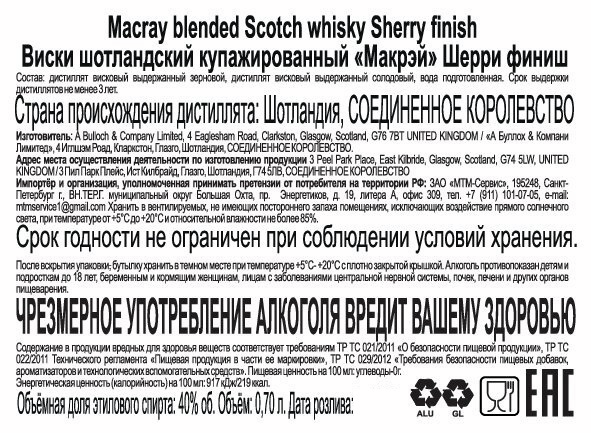 Виски Macray Sherry Finish шотландский купажированный, 0.7л